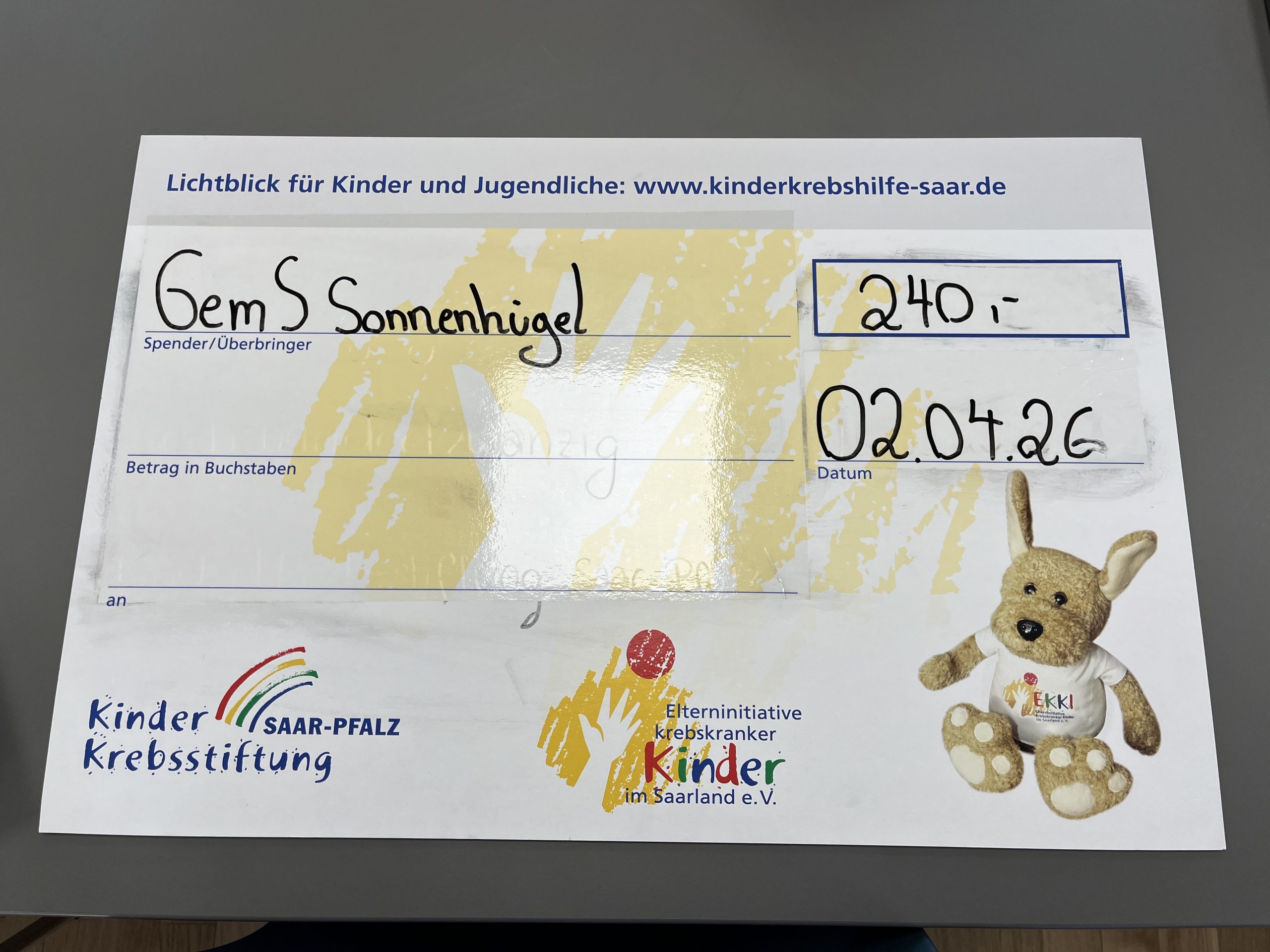 Die Einnahmen wurde nun feierlich an die Elterninitiative krebskranker Kinder im Saarland e.V. übergeben – ein tolles Beispiel dafür, wie junge Menschen durch gemeinsame Tatkraft Großes bewirken können.