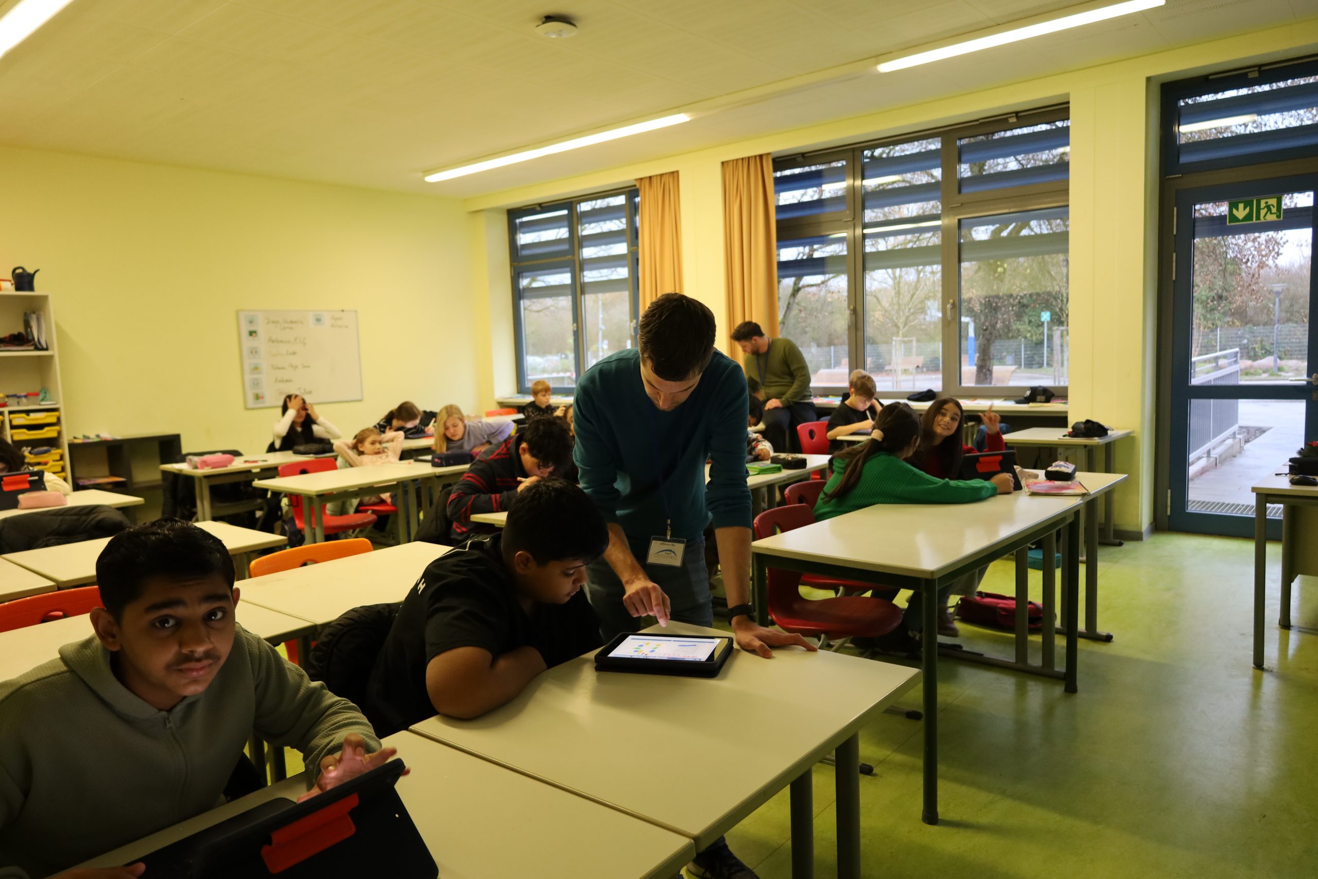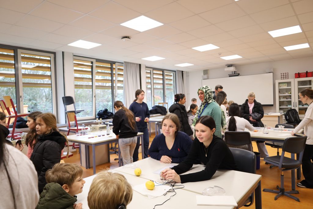 Im Anschluss führten Schülerinnen und Schüler die Gäste durch das Schulgebäude und stellten spannende Bereiche wie die Naturwissenschaftsräume, den Schulgarten, die Aktivitäten im FreiDay, die Werkräume, die Berufsorientierungsangebote und die Oberstufe vor. Auch die Klassensäle luden zum Entdecken ein: Hier erlebten die Besucherinnen und Besucher den modernen Unterricht mit digitalen Tafeln, iPads statt Schulbüchern und abwechslungsreichen Mitmachangeboten aus verschiedenen Fächern, die Einblicke in den Schulalltag gewährten.