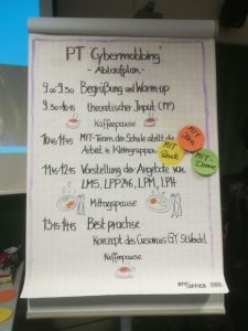 Im Rahmen einer Fortbildungsreihe wurde ein schuleigenes Mobbing-Interventions-Team ausgebildet. Im Anschluss an diese Fortbildung folgte ein pädagogischer Tag, an welchem alle Kollegen mit dieser Thematik intensiv vertraut gemacht wurden und schuleigene Handlungsstrategien erarbeitet wurden.